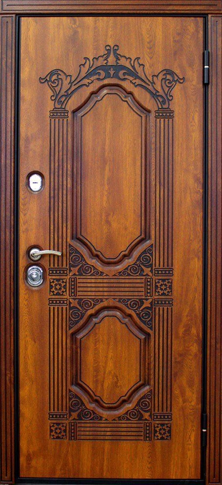 При изготовлении двери с отделкой виноритом на заказ, её можно сделать как глухой, так и декорированную вставками из стекла с элементами ковки. Для установки в дом такую дверь можно сделать с применением терморазрыва, и эта дверь будет надежно сохранять в доме тепло, не промерзая и не конденсируя.