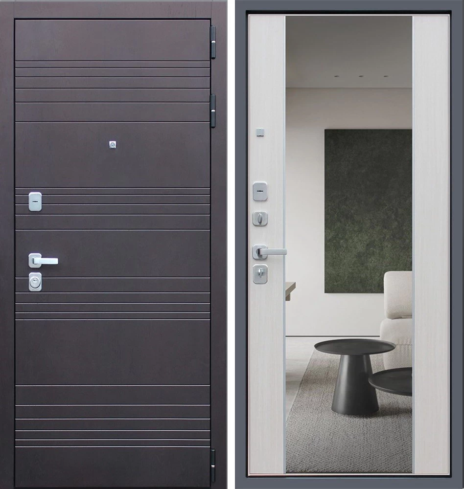 Надежная входная Дверь Дуэт с зеркалом премиум класса по цене 47 201 руб. Большая толщина стали защитит от проникновения в ваш дом, квартиру или коттедж. Используется очень качественная фурнитура: замки, цилиндры, ручки, защелки. Покрытие и отделка двери изготовлено под внимательным контролем производителя. Дверь имеет долгий срок службы и гарантию.