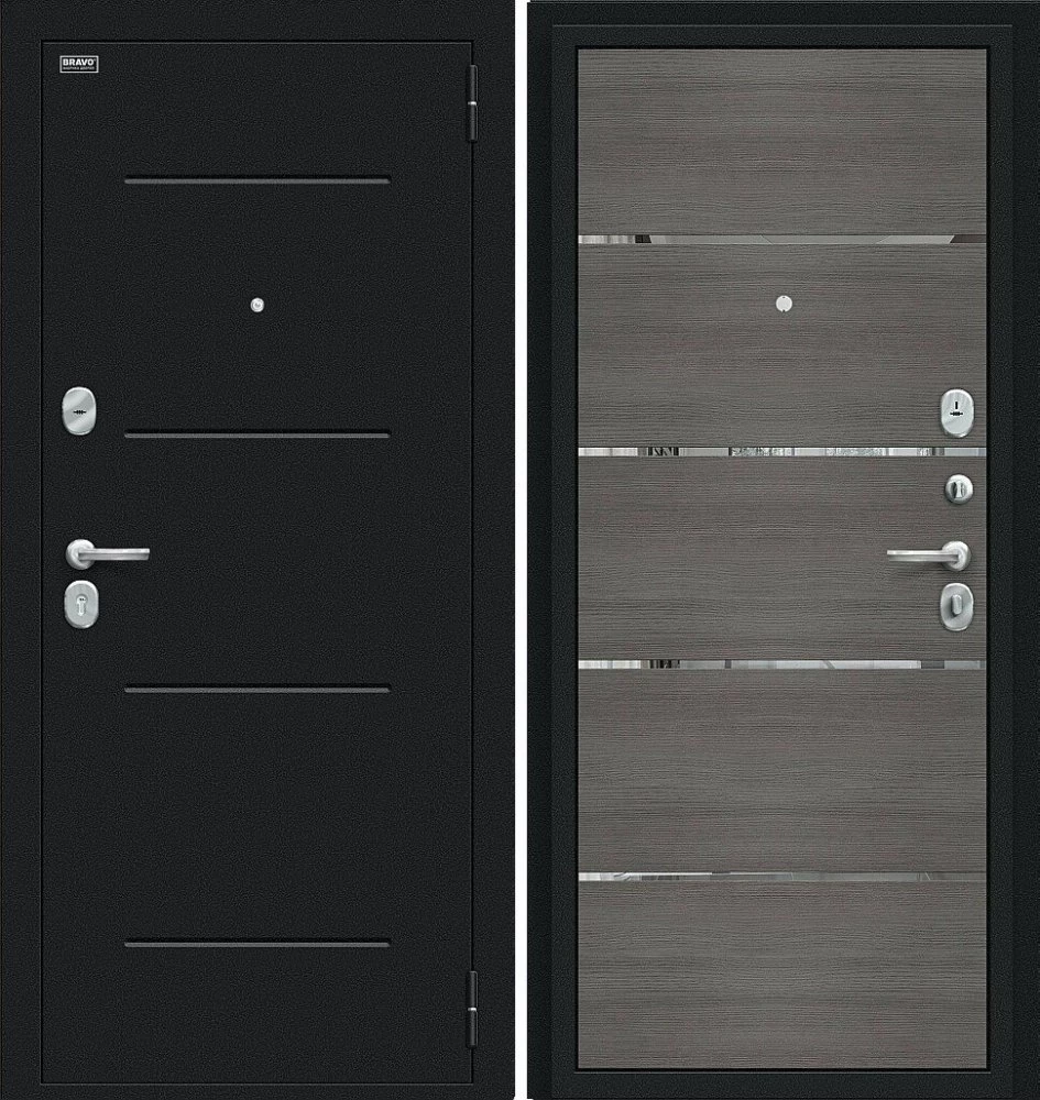 Надежная входная Дверь Браво Лайн Букле черное/Grey Melinga премиум класса по цене 30 021 руб. Большая толщина стали защитит от проникновения в ваш дом, квартиру или коттедж. Используется очень качественная фурнитура: замки, цилиндры, ручки, защелки. Покрытие и отделка двери изготовлено под внимательным контролем производителя. Дверь имеет долгий срок службы и гарантию.