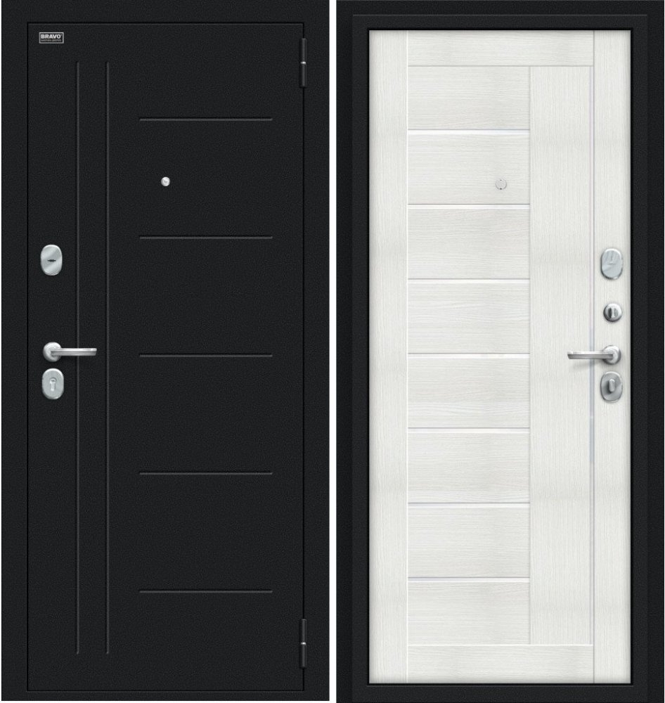 Надежная входная Дверь Браво Проф Букле черное/Bianco Veralinga премиум класса по цене 32 901 руб. Большая толщина стали защитит от проникновения в ваш дом, квартиру или коттедж. Используется очень качественная фурнитура: замки, цилиндры, ручки, защелки. Покрытие и отделка двери изготовлено под внимательным контролем производителя. Дверь имеет долгий срок службы и гарантию.