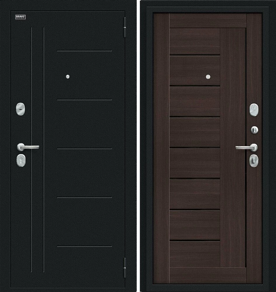 Надежная входная Дверь Браво Проф Букле черное/Wenge Veralinga премиум класса по цене 32 901 руб. Большая толщина стали защитит от проникновения в ваш дом, квартиру или коттедж. Используется очень качественная фурнитура: замки, цилиндры, ручки, защелки. Покрытие и отделка двери изготовлено под внимательным контролем производителя. Дверь имеет долгий срок службы и гарантию.