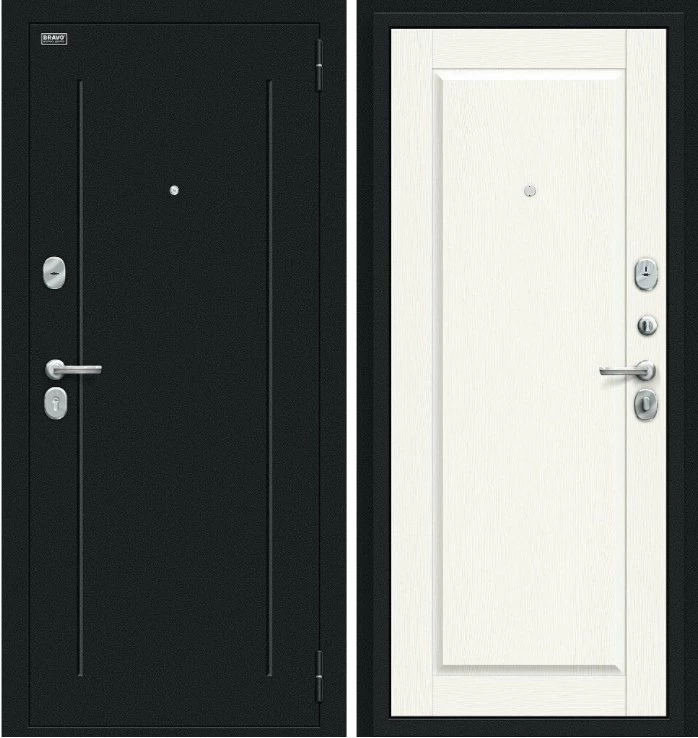 Надежная входная Дверь Браво Сьют Kale Букле черное White Wood премиум класса по цене 36 421 руб. Большая толщина стали защитит от проникновения в ваш дом, квартиру или коттедж. Используется очень качественная фурнитура: замки, цилиндры, ручки, защелки. Покрытие и отделка двери изготовлено под внимательным контролем производителя. Дверь имеет долгий срок службы и гарантию.