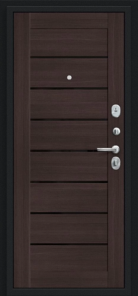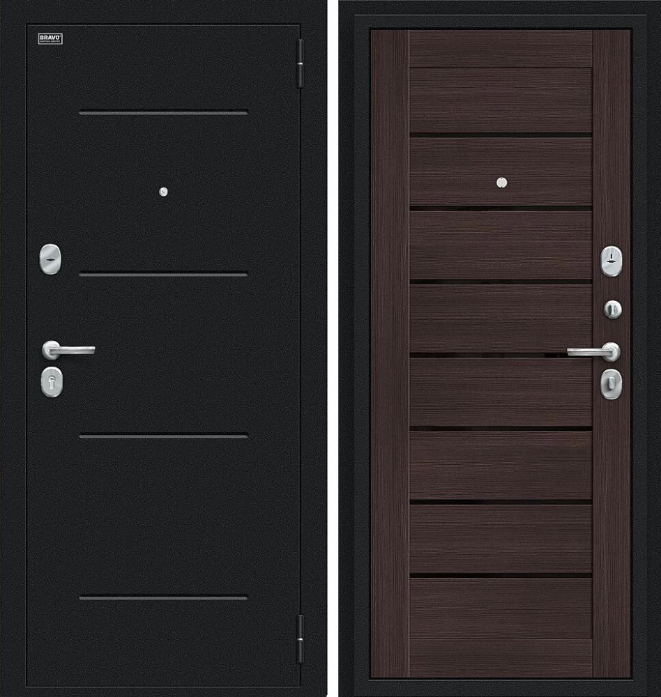 Надежная входная Дверь Браво Техно Букле черное/Wenge Veralinga премиум класса по цене 31 301 руб. Большая толщина стали защитит от проникновения в ваш дом, квартиру или коттедж. Используется очень качественная фурнитура: замки, цилиндры, ручки, защелки. Покрытие и отделка двери изготовлено под внимательным контролем производителя. Дверь имеет долгий срок службы и гарантию.
