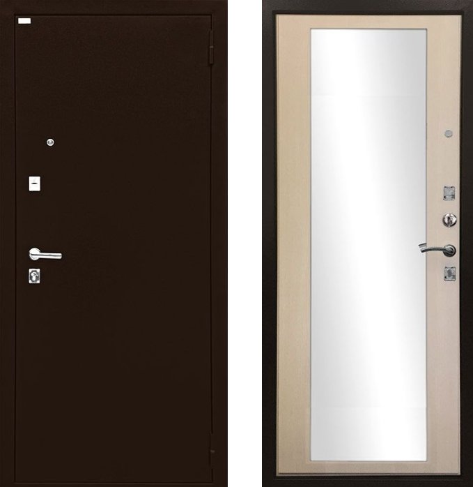 Надежная входная Дверь Ратибор Люкс Зеркало Экодуб премиум класса по цене 31 051 руб. Большая толщина стали защитит от проникновения в ваш дом, квартиру или коттедж. Используется очень качественная фурнитура: замки, цилиндры, ручки, защелки. Покрытие и отделка двери изготовлено под внимательным контролем производителя. Дверь имеет долгий срок службы и гарантию.