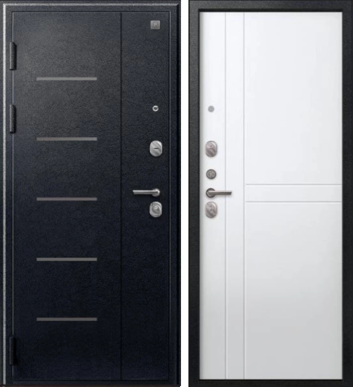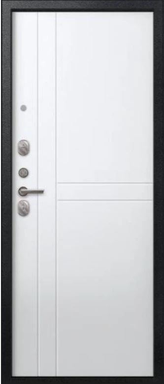Надежная входная Дверь V-06 Черный муар - Белый премиум класса по цене 38 801 руб. Большая толщина стали защитит от проникновения в ваш дом, квартиру или коттедж. Используется очень качественная фурнитура: замки, цилиндры, ручки, защелки. Покрытие и отделка двери изготовлено под внимательным контролем производителя. Дверь имеет долгий срок службы и гарантию.